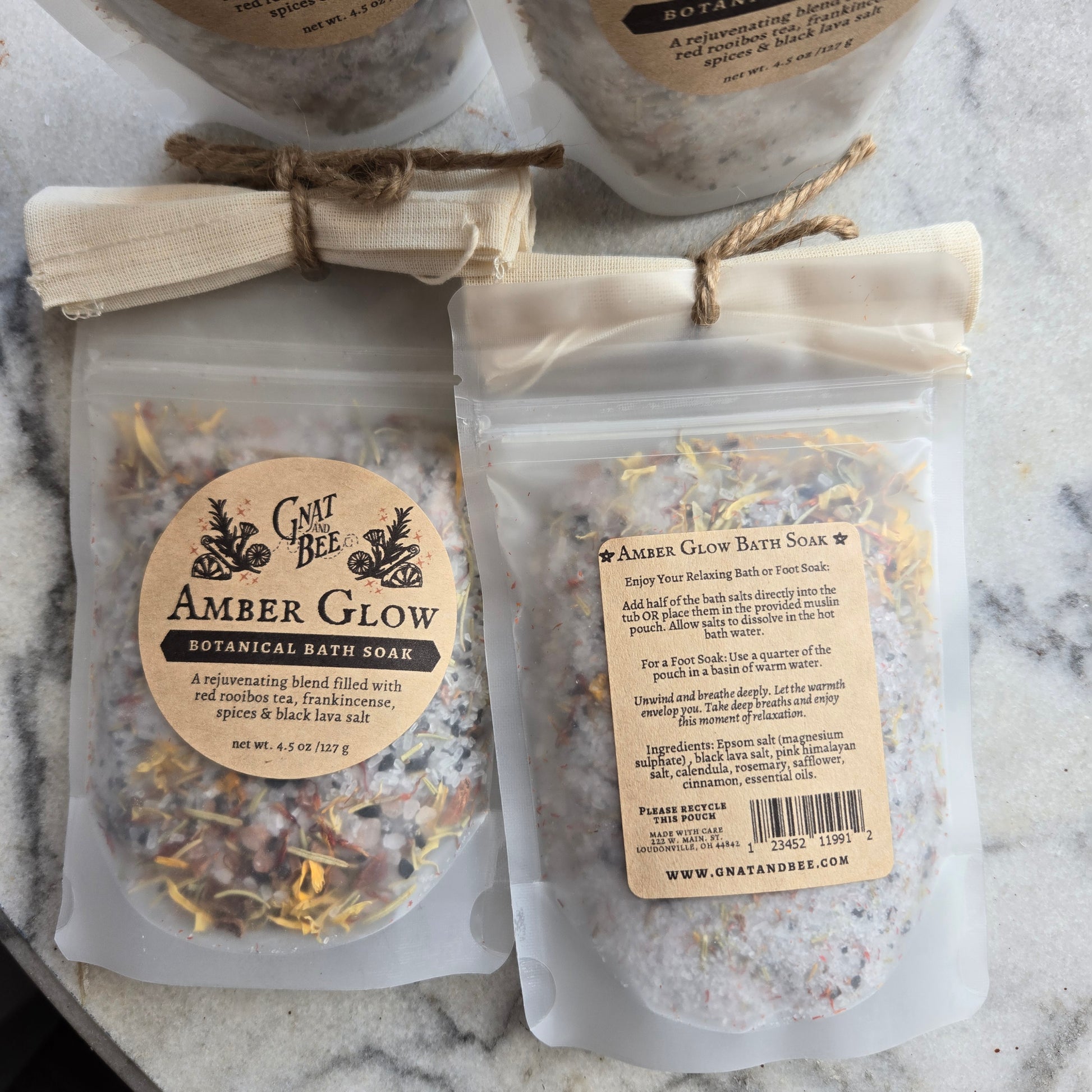 Foot Soak: Don't have a bathtub or time to take a long bath? A foot soak is another great way to use these salts. Fill a large bucket with hot water, add 1/4 cup of Amber Glow and stir to dissolve. Submerge your feet and relax.