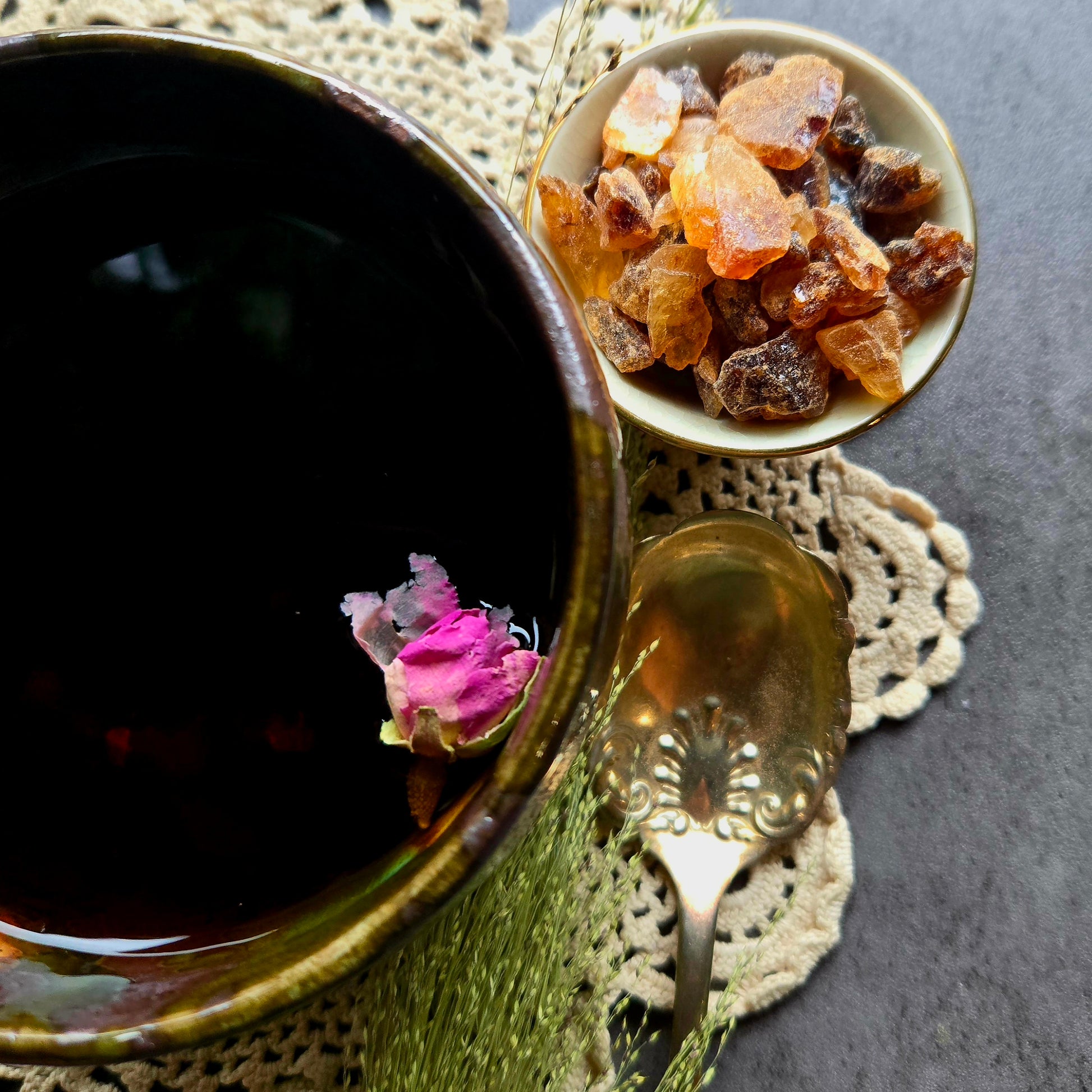 Elevate your tea ritual with amber sugar crystals. Celebrated for their pure, unadulterated sweetness, these crystals deliver a smooth and gentle flavor that enhances your tea without ever overpowering its natural flavor profile.