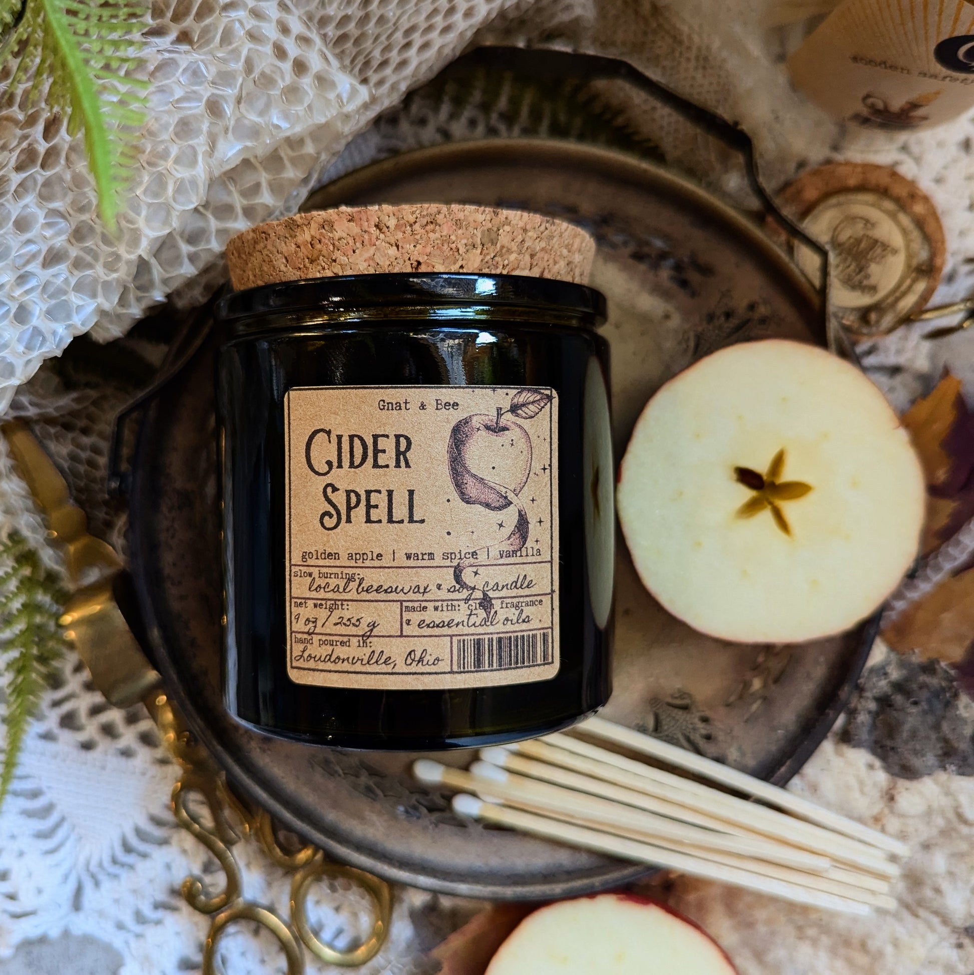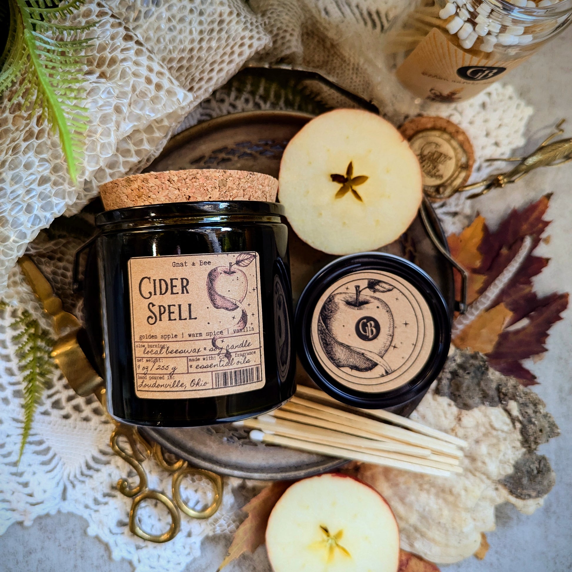 Step into a Mabon ritual of your own with our Cider Spell candle. This scent is an ode to the golden abundance of the second harvest and the sacred cycle of life. It evokes the feeling of a quiet moment in an old apple orchard, where the air is filled with the magic of the season. We've captured the essence of freshly pressed cider and golden apples, their crisp scent mingling with the hint of spice. A heart of vanilla and warm, familiar notes grounds the fragrance, like a heartfelt offering to the earth.
