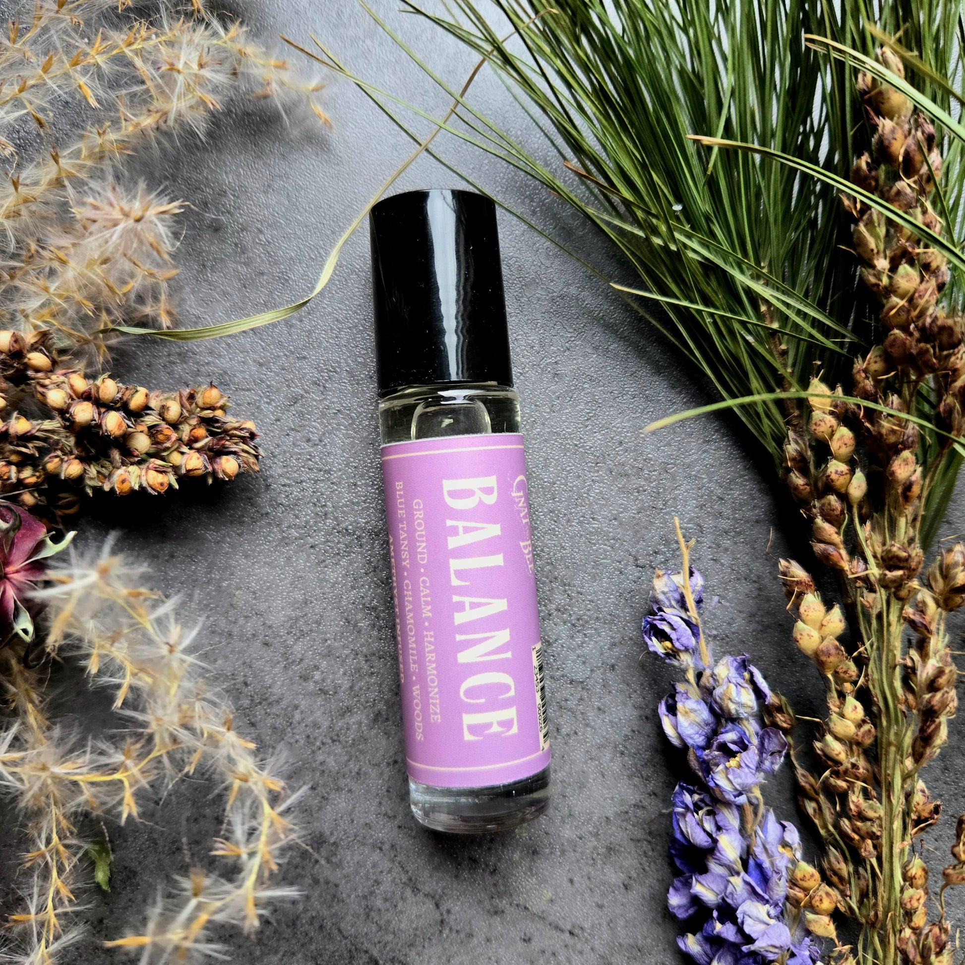 - Balance: Ground, Calm, Harmonize This blend is your go-to for finding your center. Spruce and Ho Wood provide grounding, while Frankincense adds a touch of tranquility. Blue Tansy and Blue Chamomile soothe the mind, easing tension and promoting relaxation. Osmanthus offers a delicate floral note that uplifts the spirit. The Amethyst crystal enhances these calming and grounding properties. Perfect for those days when you feel scattered or overwhelmed.