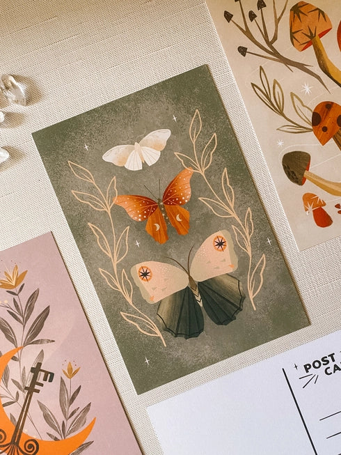 Premium post cards for traditional mailing in assorted designs handmade by Lantern Print Co.