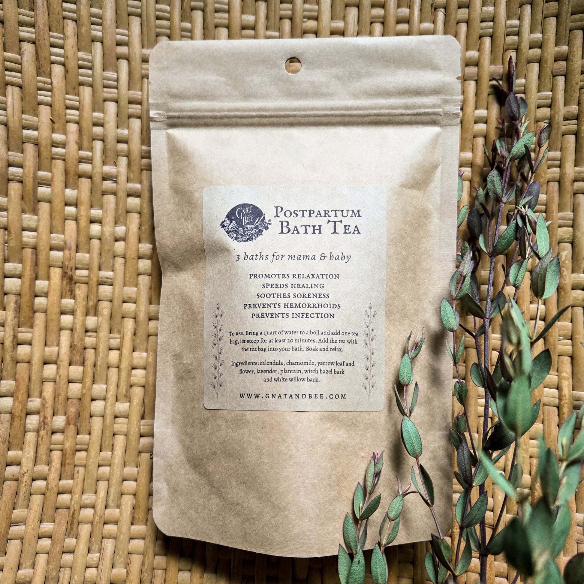 An herbal blend for baths after birth for relaxation, to speed healing, soothe soreness, and help prevent infection. Safe for mother and baby.