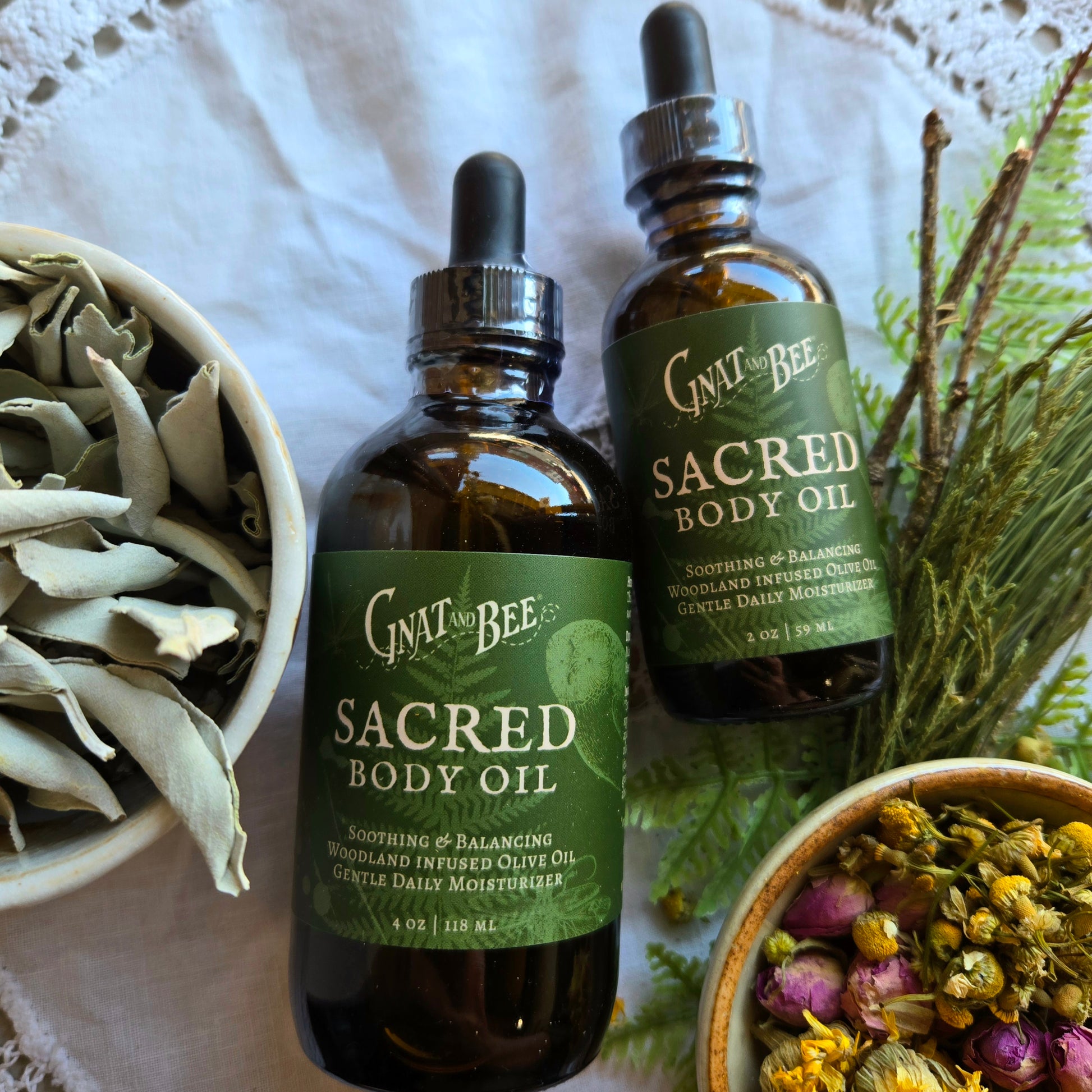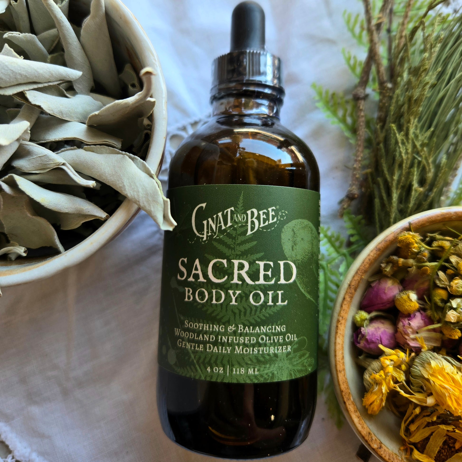 I truly love Gnat & Bee’s body oils and body butters! This Sacred Body Oil is just right for the dryness that comes with winter. I can attest to this; I live in Maine (brrr!) and it is very, very cold here. The heat constantly running indoors makes the air so very dry. This oil is a great defense against the challenges of winter. Olive oil is a nice choice to combat dryness. This oil absorbs readily into my skin without greasiness. The scent is lovely; winter without being overdone. It is fresh and calming all at the same time. I add a dropper-full to several pumps of my favorite shea butter lotion, and rub that on my skin from chest to toes. It’s the perfect hydration for dry winter skin.